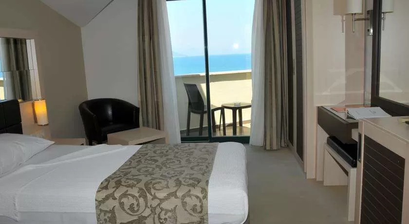 Отель : один 3-х этажный корпус 91 standard rooms (69 sea side, 12 номеров без балкона, макс 2+1 чел, 20 кв.м.); 5 двухкомнатных suites (холл, спальня с дверью, макс 3+1 чел, 40 кв.м.). К оплате принимаются кредитные карты - Visa, Master, Euro. Размещение с животными - нет.