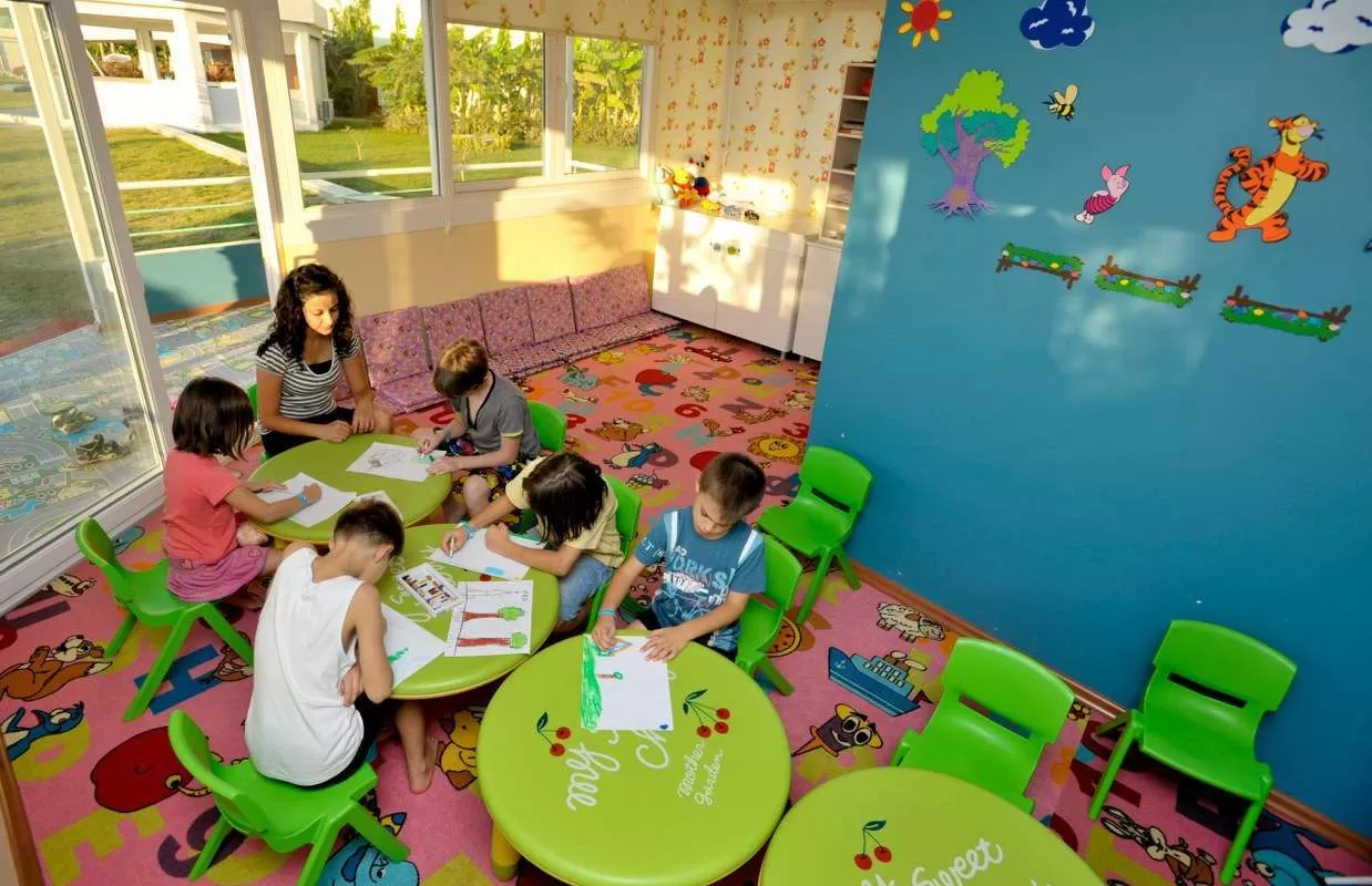 Детский бассейн (1 открытый и 1 крытый); мини-клуб для детей 4-12 лет работает с 10:00-12:30 и с 14:30-17:30; детская площадка; ресторан(ы) с высокими стульчиками для детей; детское меню; детская кроватка (по запросу-бесплатно); услуги няни (платно).