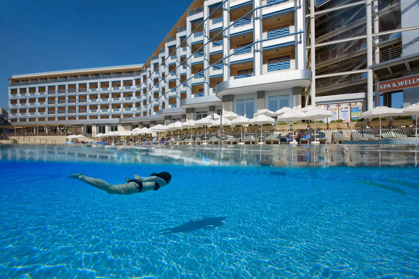 Отель, построенный в 1991 году и обновленный в 2011 году, состоит из основного 5-этажного здания. На территории отеля предлагаются разнообразные удобства, включая три открытых бассейна, аквапарк, спа-центр с сауной и турецкой баней, фитнес-центр и конференц-зал на 200 человек. Гостям также доступны ресторан, бары у бассейна и в лобби, а также кафе, предлагающее мороженое и напитки.