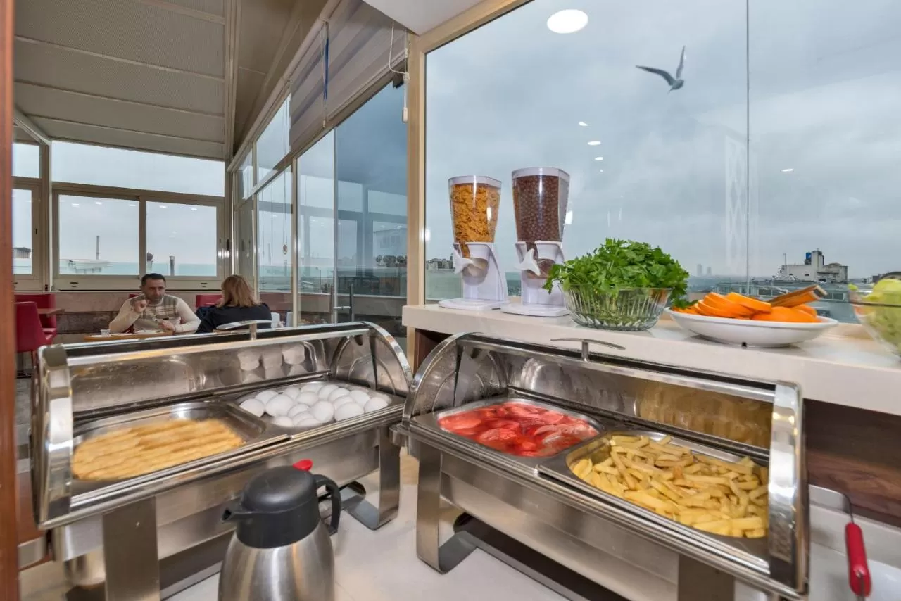 Каждое утро гостям предлагается завтрак "шведский стол", включающий фирменные блюда турецкой кухни. Завтрак может быть подан в номер. В ресторане на террасе с видом на Мраморное море можно попробовать блюда турецкой кухни, такие как таджин и кус-кус, а также насладиться турецкими десертами, гезлеме и чаем. На территории отеля также работает бар.