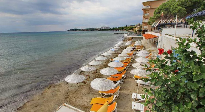Расположен в 80 км от аэропорта г. Измир, в 5 км от центра Кушадасы, на берегу моря.