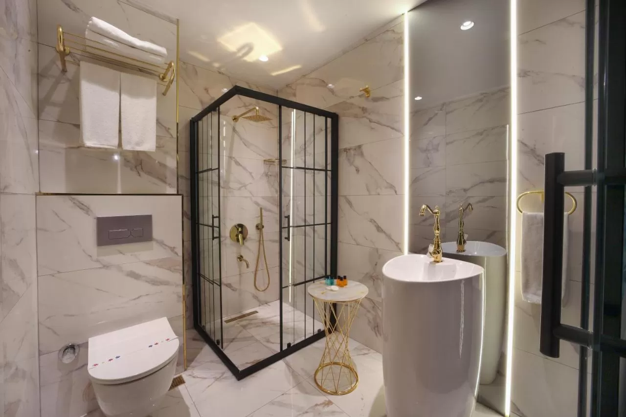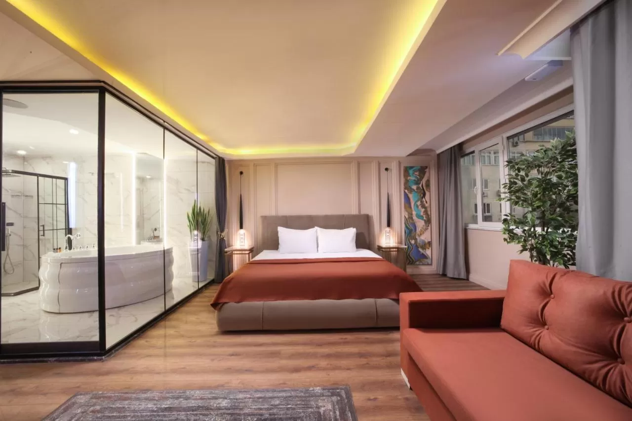 Люксы отеля оформлены в стильных белых, серых и красных тонах. В каждом номере имеется ЖК-телевизор со спутниковыми каналами и уютный гостиный уголок. В некоторых номерах есть терраса и личная гидромассажная ванна.