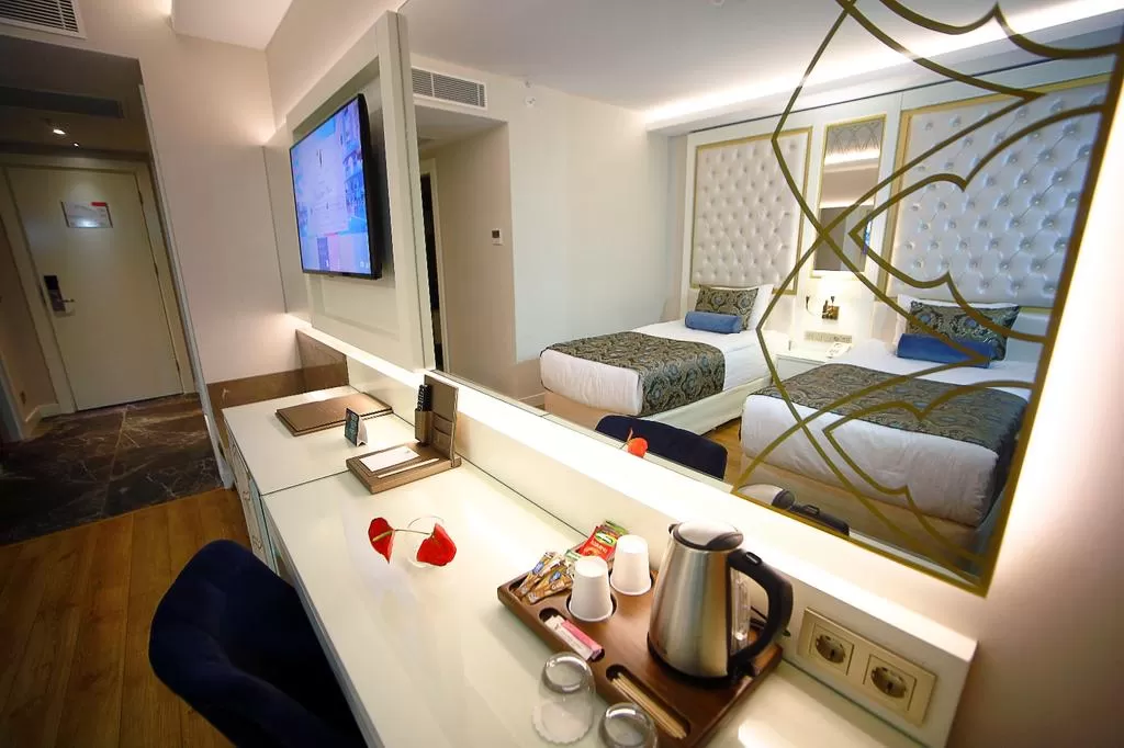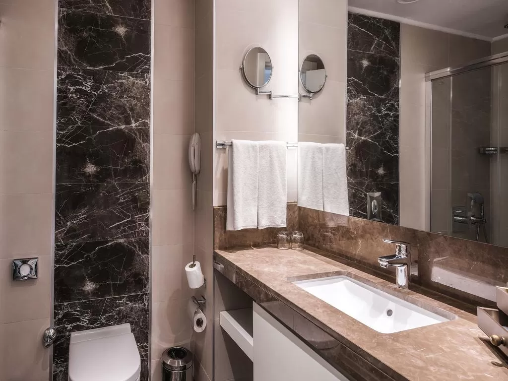 В номере: кондиционер, телевизор, телефон, сейф (бесплатно), мини-бар, душ, фен, room-serice (платно).Уборка номера: ежедневно.