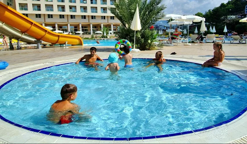 Открытый бассейн, крытый бассейн без обогрева, детский бассейн, 2 водных горки, салон красоты, 3 конференц–зала (до 200 чел), основной ресторан, 6 баров, амфитеатр.