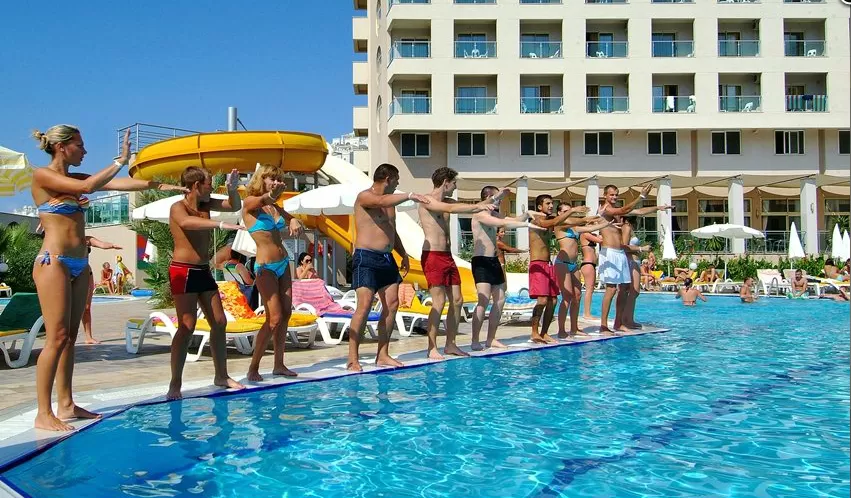 Бесплатные услуги: легкие анимационные программы, ночные шоу программы, WI-FI в лобби, тренажерный зал, турецкая баня, теннисный корт (бетонное покрытие), теннисные мячи и ракетки (под залог), настольный теннис, пляжный волейбол, баскетбол, шахматы, бочча, дартс, дискотека (вход).
