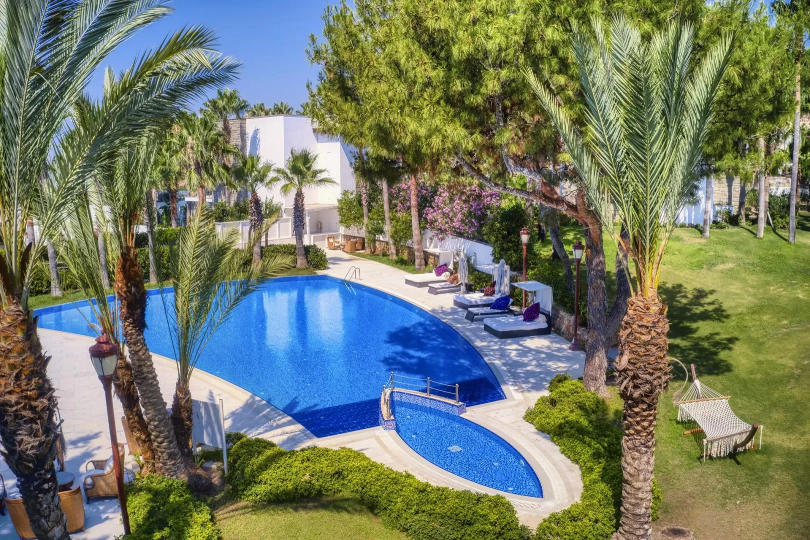 Отель с 96 номерами расположен в 1 км от города Бодрум и занимает площадь 20 000 м². Из номеров, ресторана и бассейнов открывается вид на Эгейское море, крепость Бодрума, яхтенный порт и остров Кос.