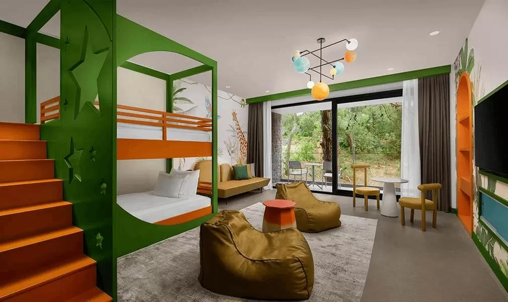 Для маленьких гостей предусмотрены детская кроватка в номер по запросу, детский клуб, игровая комната, детский бассейн, уголок для приготовления детского питания, стульчики для кормления и детское меню в главном ресторане. Также доступны спальная комната, комната для кормления, детская коляска, радионяня, детская ванночка, горшок, детский набор для ванн и ночник по запросу.