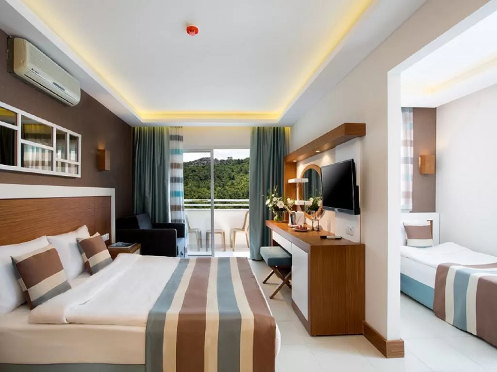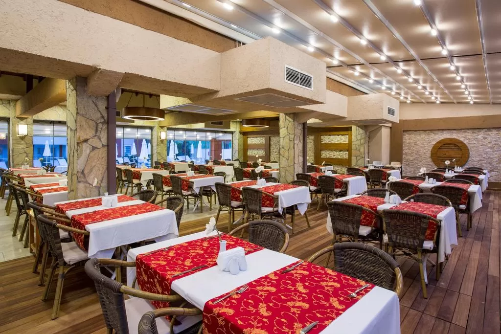 Отель расположен в 59 км от аэропорта г. Антальи, на второй береговой линии.