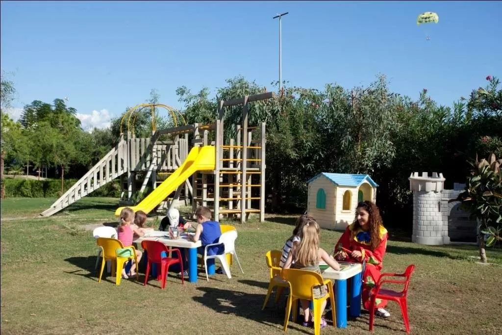 1 детский бассейн с навесом от солнца; 4 детские площадки; детская анимация на русском языке; хобби ателье в мини клубе (платно); организация детского день рождения; мини дискотека; мини-клуб; мини-зоопарк; птичий заповедник; батут (платно);детский картинг (платно); игровые автоматы (платно); Sony Playstation (платно); няня (платно).