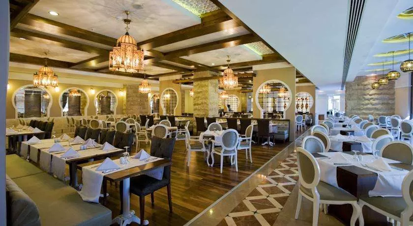 Основной ресторан (диетическое меню), 5 ресторанов a'la carte (китайский, рыбный, итальянский, мексиканский, средиземноморский), бары, конференц-зал, бассейны (в том числе крытый), аквапарк (6 водных горок), спа-центр.