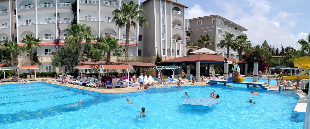 Отель, площадью 30.000 м², находится в 115 км от аэропорта г.Анталии, в 8 км от г.Алании, в туристическом поселке Конаклы, на первой береговой линии. Год открытия: 1993. Год реконструкции: 2012.