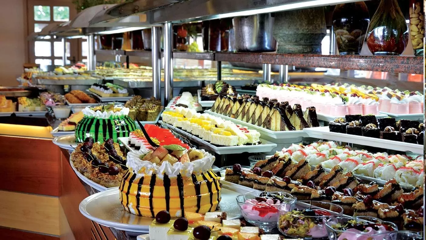 завтрак, поздний завтрак, обед и ужин - шведский стол, горячие и холодные закуски в течение дня, чаепитие, кофе и выпечка, сервис мороженого в определенные часы, фрукты, ночной буфет, с 10:00 до 01:00 алкогольные напитки местного и некоторые импортного производства на разлив.