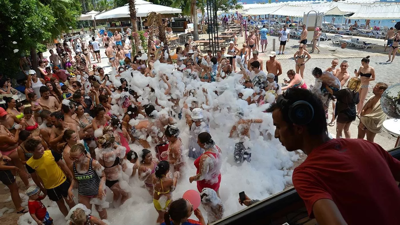 открытый бассейн, relax бассейн, 4 водные горки, 2 теннисных корта (синтетическая трава на кварцевом песке), основной ресторан, 5 баров, дискотека.