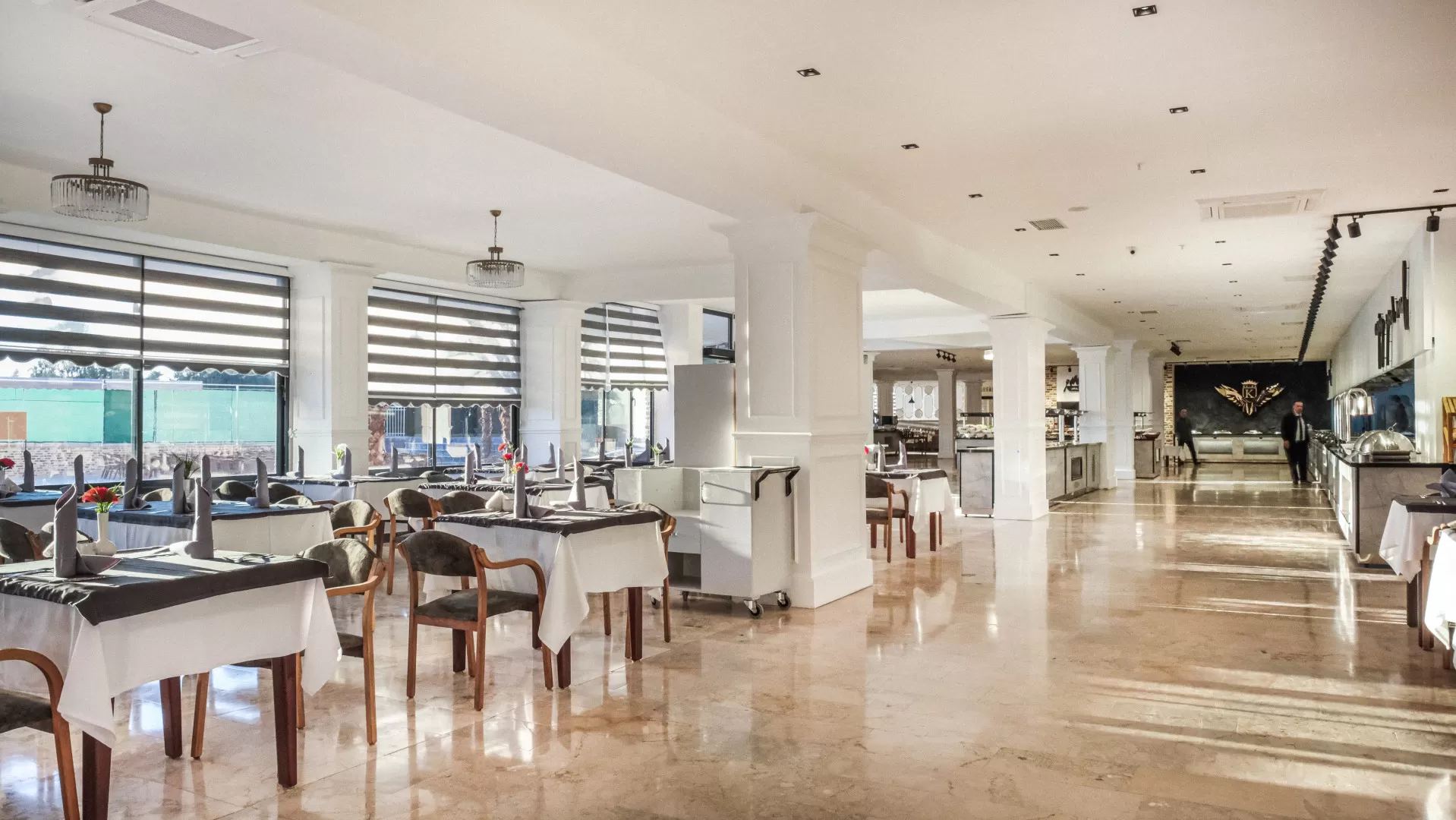 В ресторанах a la carte и шведского стола подаются блюда турецкой кухни. Необходима предварительная резервация. В течение дня предлагаются закуски в баре на пляже. В барах предлагаются прохладительные и алкогольные напитки местного производства. Система "Все включено" действует с 10:00 до 24:00.
