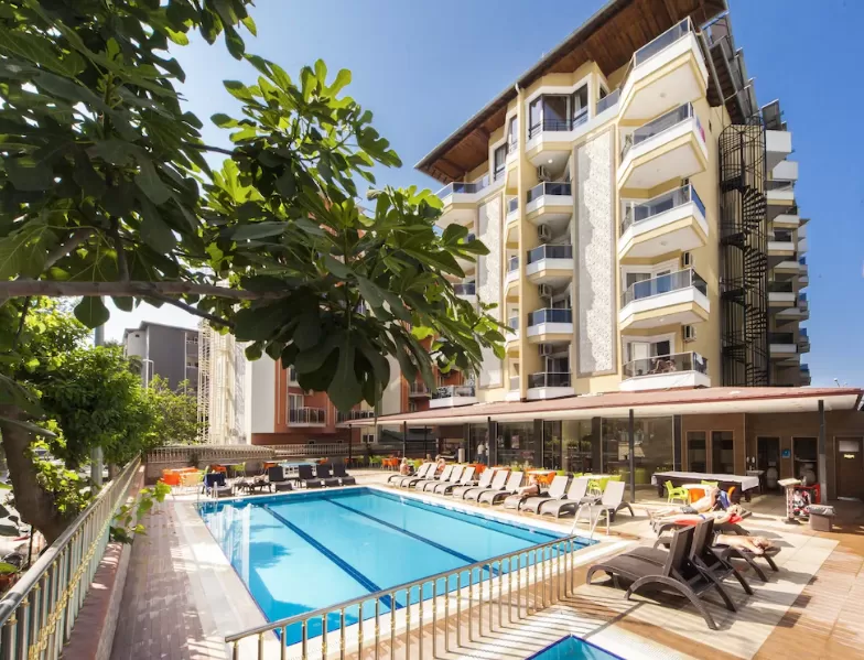 Отель расположен в 1 км от центра Алании, на побережье Средиземного моря, в 118 км от аэропорта Анталии, в 44 км от аэропорта Газипаша г. Алании.