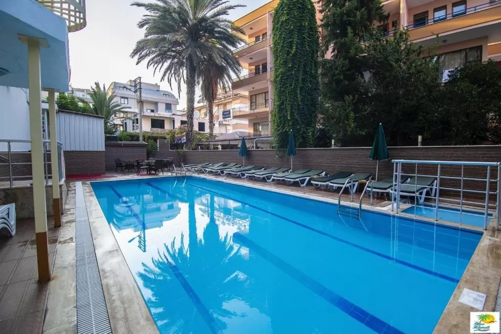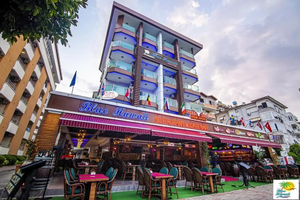 Отель Kleopatra Blue Hawai находится на первой линии города Аланья, в 700 м от Пляжа Клеопатра и в 1,7 км от Общественного пляжа Аланьи. Рядом находятся такие популярные достопримечательности, как Аквапарк Alanya, Археологический музей Алании и Пещера Дамлаташ. Аэропорт Газипаша-Аланья находится в 41 км.