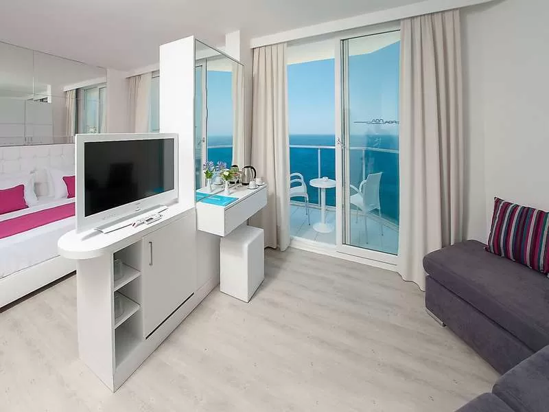 Бесплатно: Wi-fi (Lobby,rooms), турецкая баня, cауна, тренажерный зал, сейф, мини-бар (только вода), 3 теннисных корта (днем), зонты, шезлонги, матрасы, пляжные полотенца.