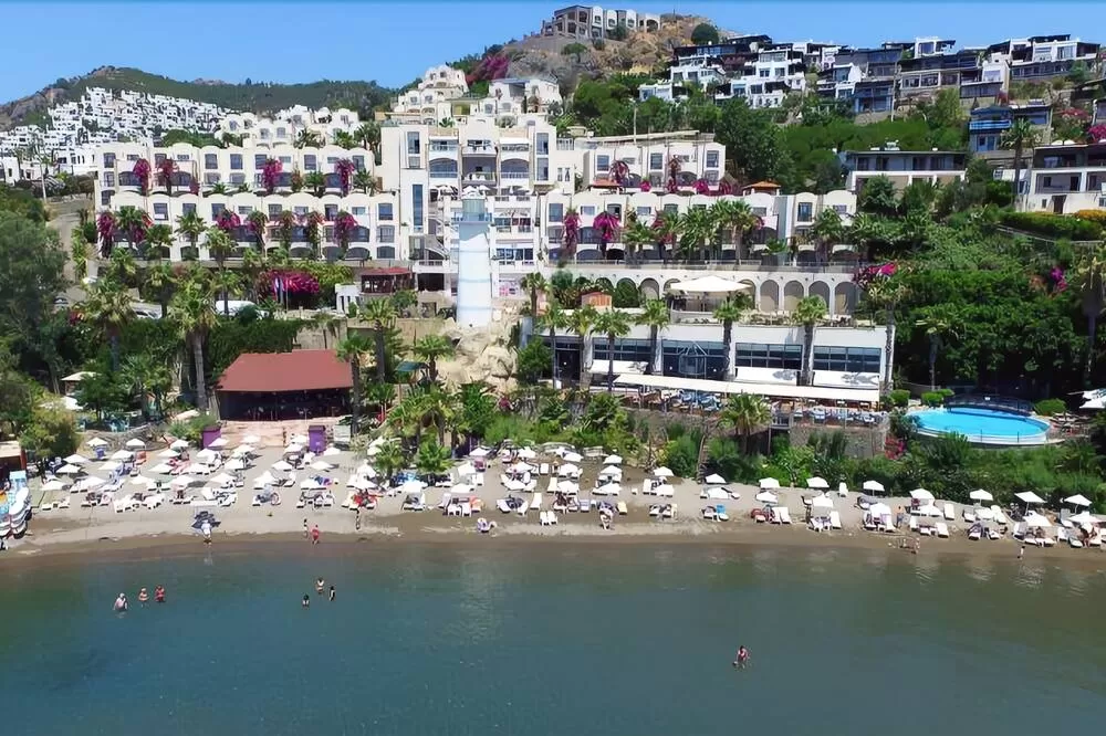 Отель расположен в 1,5 км от поселка Ортакент, в 13 км от центра г. Бодрума, на берегу моря, на побережье Эгейского моря, в 50 км от аэропорта Милас г. Бодрум.
