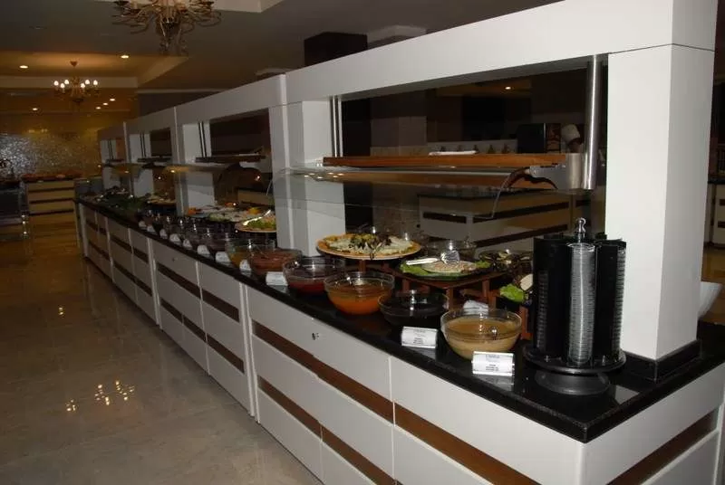 В ресторанах и барах: завтрак, поздний завтрак, обед, ужин- шведский стол, горячие и холодные закуски в течение дня, чаепитие, кофе, выпечка, сервис мороженого в определенные часы, ночной суп и закуски, ужин в ресторане A’la Carte по предварительной резервации, с 10:00 до 24:00 алкогольные и безалкогольные напитки местного производства на разлив.