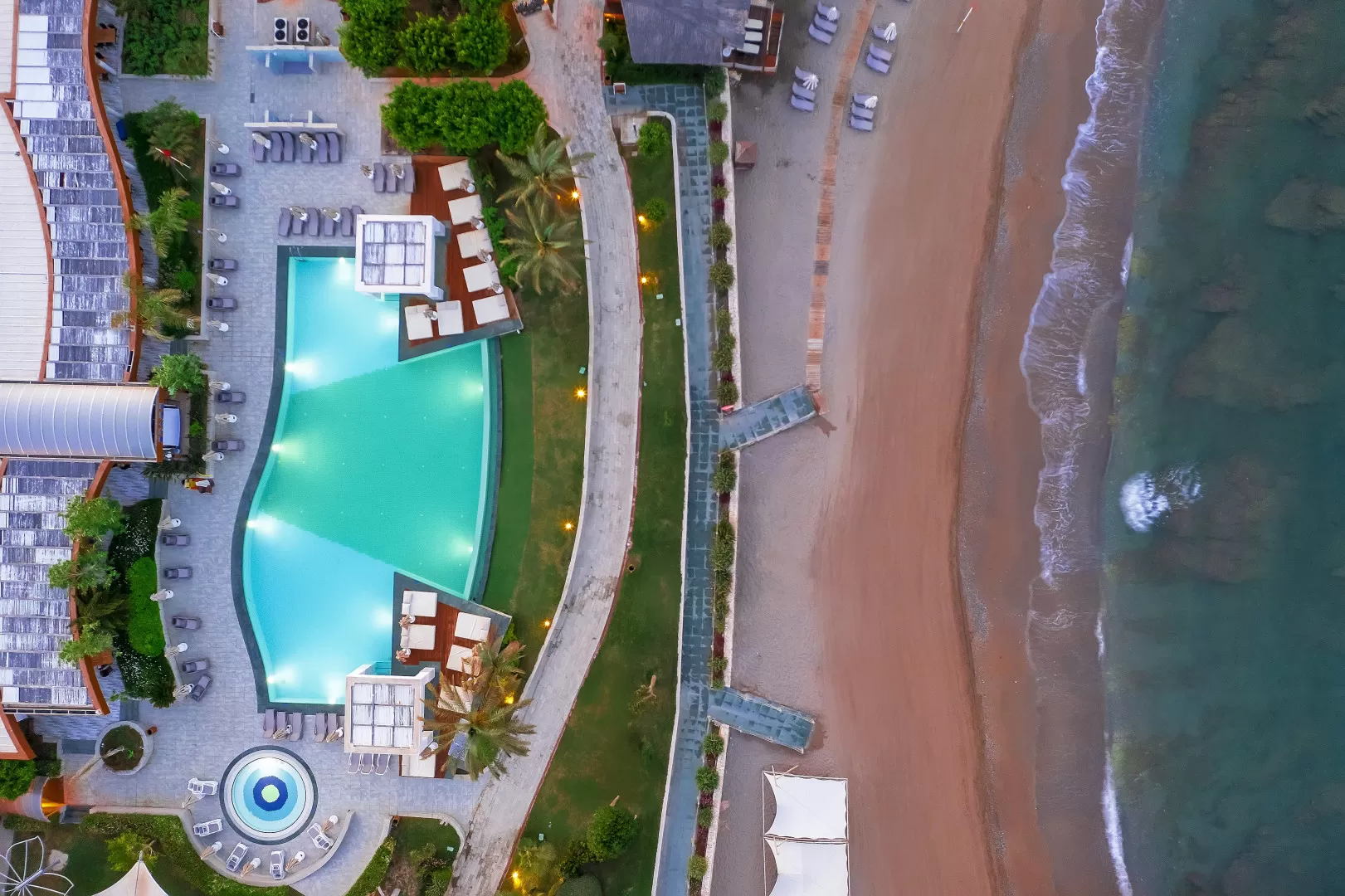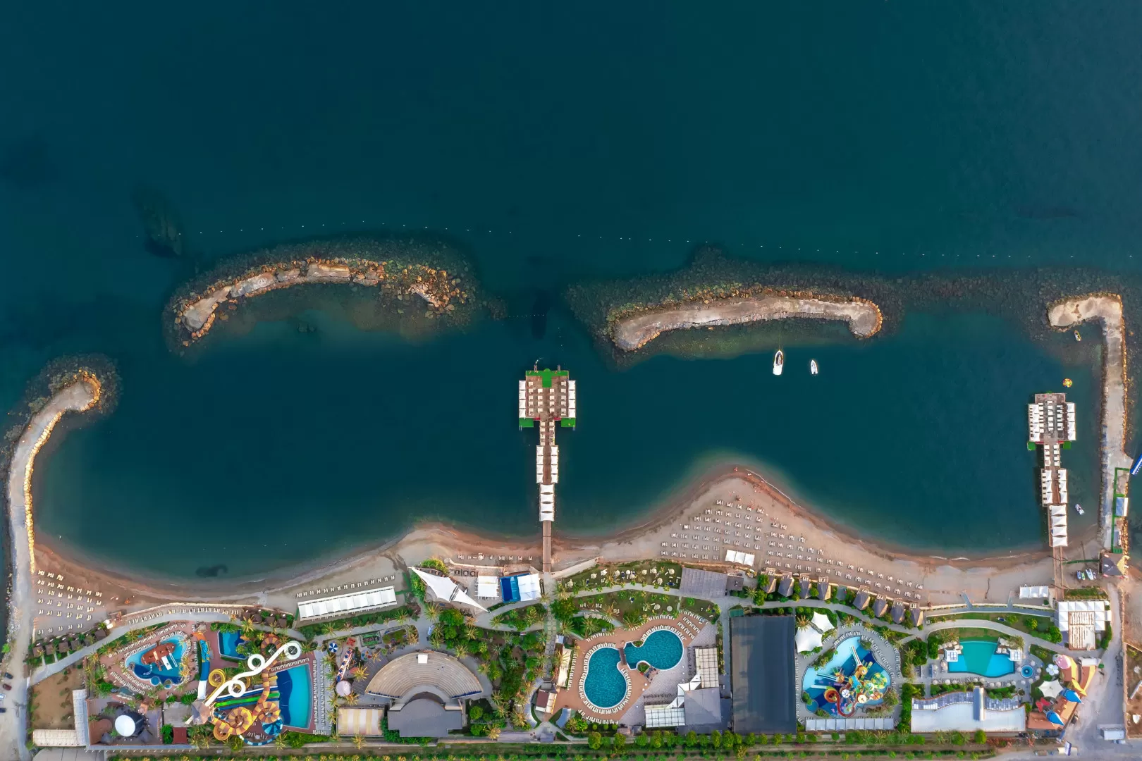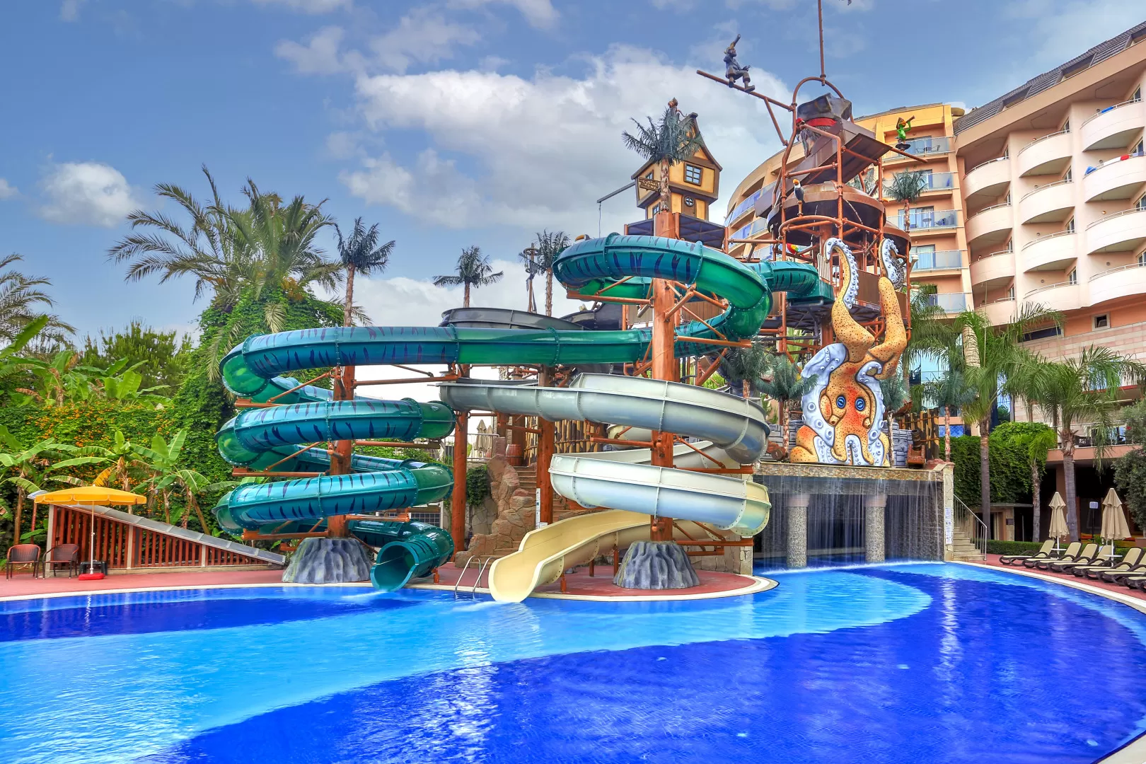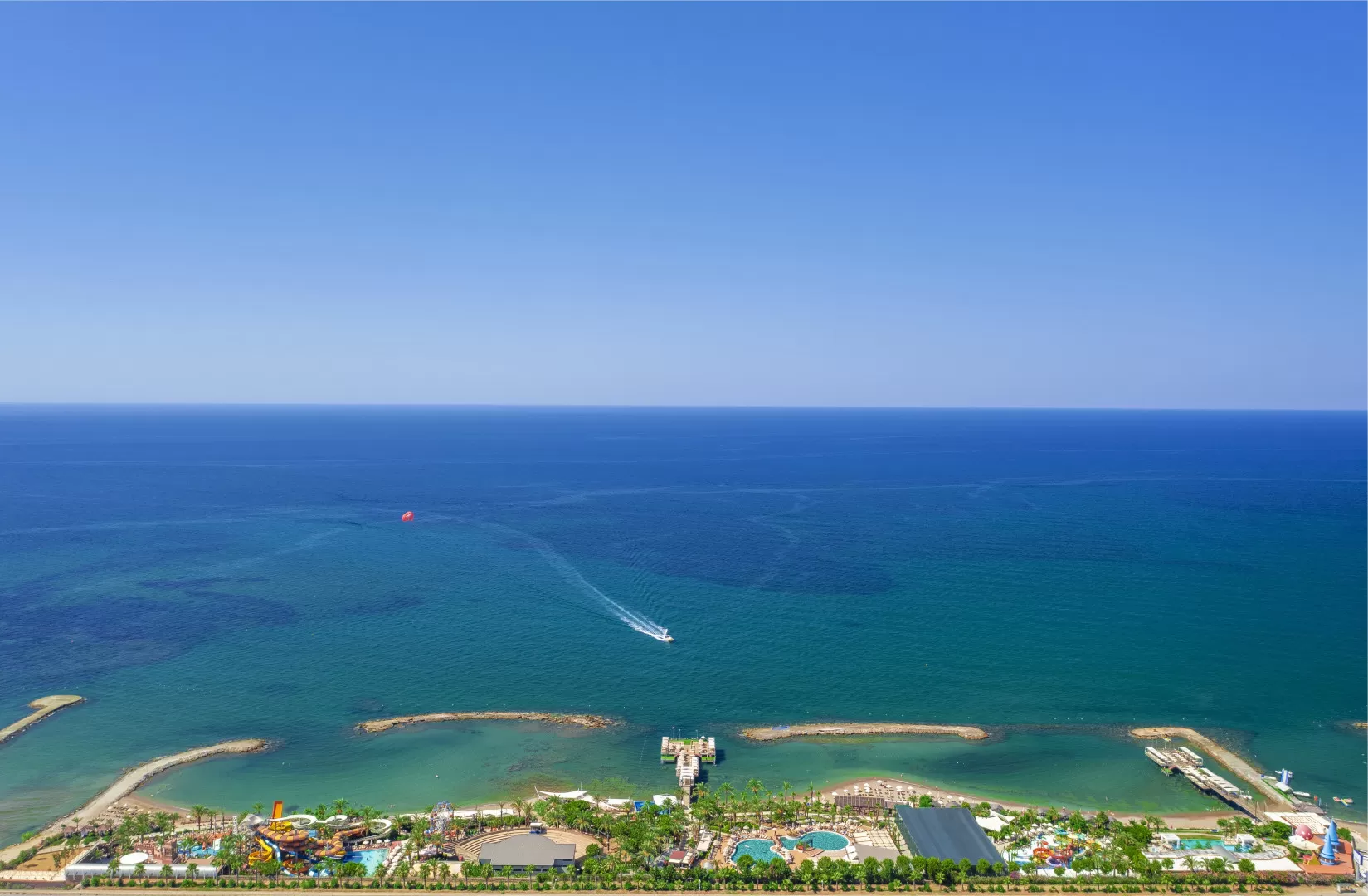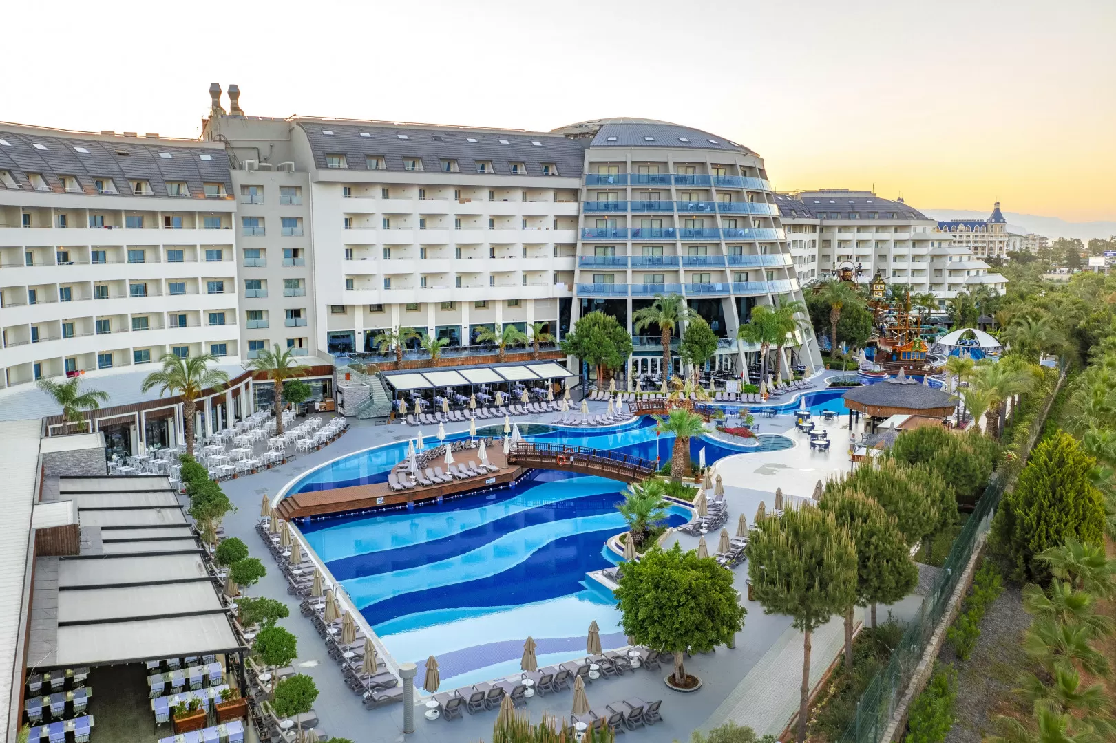 Отель был построен в 2006 году и обновлен в 2022 году. Он включает в себя основное здание, три дополнительных корпуса, 12 вилл и 12 шале. На территории отеля есть 36 горок, 5 аквапарков, 21 бассейн, луна-парк, диско-клуб под открытым небом и множество ресторанов и баров. Отель также предоставляет услуги спа, фитнес-центра, Wi-Fi и конференц-залы.