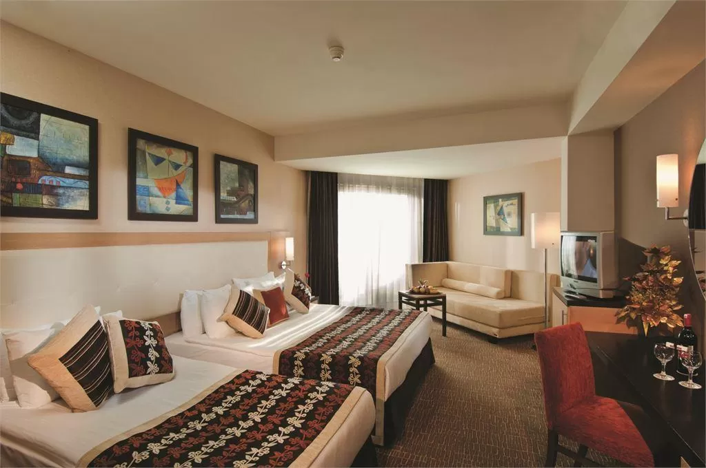 Гостям отеля предлагается широкий спектр удобств и развлечений. На территории находятся открытые бассейны, аквапарк и джакузи. Спа-центр включает сауну, паровую баню, массажные процедуры, джакузи, крытый бассейн и парикмахерскую. Дневные развлечения включают баскетбол, пляжный волейбол, водную гимнастику, мини-футбол, мини-гольф, стрельбу из лука и пневматической винтовки, зумбу, настольный теннис, аэробику, дартс, турниры и игры в бассейне. Вечерами гостей ждут специальные выступления и шоу, караоке, тематические вечера и дискотеки. На территории отеля также есть игровой зал, два теннисных корта, кинотеатр, фитнес-центр, зоопарк, тематический парк развлечений, парк приключений с зиплайном, школа дайвинга, водные виды спорта и четыре конференц-зала. Отель также предоставляет трансфер из аэропорта и парковку.