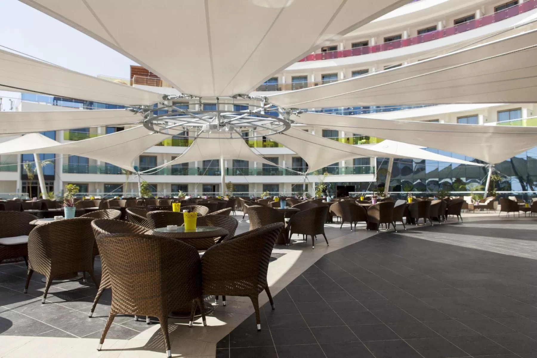 Отель работает по концепции Ultra All Inclusive (UAI), что включает трехразовое питание по системе "шведский стол" в главном ресторане, местные алкогольные и безалкогольные напитки, некоторые импортные напитки, мороженое и закуски в течение дня. На территории отеля функционируют три главных ресторана (Hayat, Harmony и ресторан для гостей вилл и шале), четыре ресторана а-ля карт с блюдами средиземноморской, турецкой и мексиканской кухонь, а также морепродуктов. Кроме того, гости могут насладиться десертами в кондитерской, посетить турецкое кафе и расслабиться в одном из 11 баров.