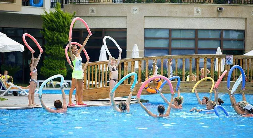 Баня, сауна, паровая комната, фитнес-центр, 1 волейбольная площадка на пляже, баскетбол, мини-футбол, настольный теннис, 1 теннисный корт, стрельба из лука, дартс, бочча, шахматы, нарды, аэробика, гимнастика, водная гимнастика, стэп, разминка, пляжные игры, водные игры, анимация, оборудование для тенниса (ракетки, мячики под залог), кинотеатр, дискотека.