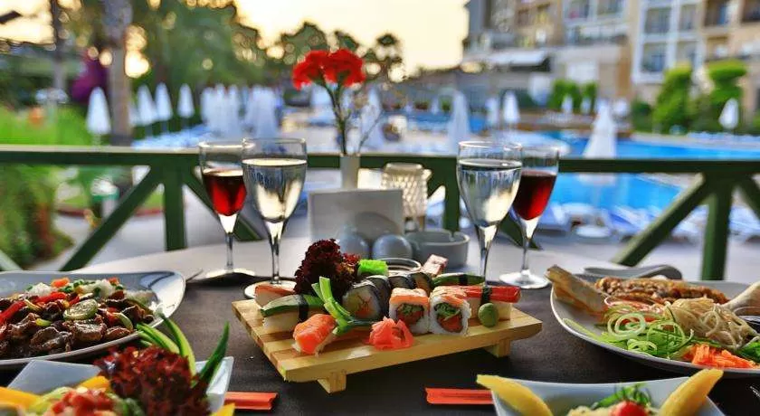 2 открытых и 1 крытый бассейн, аквапарк с водными горками, 1 основной ресторан (есть диетическое меню), 5 ресторанов a'la carte (турецкий, мексиканский , азиатский, рыбный и итальянский - по предварительной записи, посещение каждого из ресторанов 1 раз в неделю – бесплатно), бары, 3 конференц-зала, спа-центр, парикмахерская, химчистка, прачечная, кабинет врача, магазины, бесплатный wi-fi в лобби.