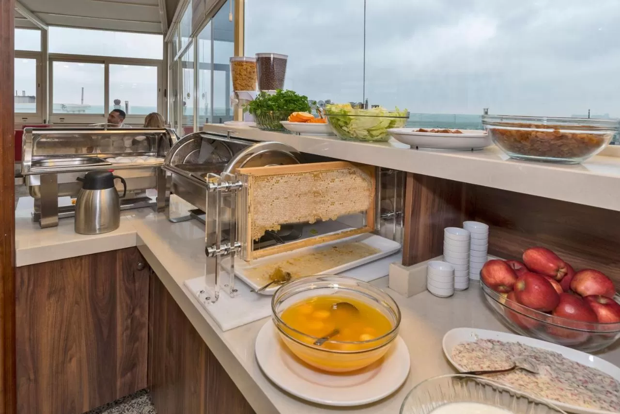 Каждое утро для гостей сервируется завтрак "шведский стол", включающий фирменные блюда турецкой кухни. Завтрак также можно заказать в номер. В ресторане с террасой, с которой открывается вид на Мраморное море, подаются традиционные турецкие блюда, такие как таджин и кус-кус, турецкие десерты, гезлеме и чай. На территории отеля работает бар.