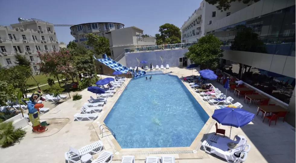 Открытый плавательный бассейн с водной горкой, Spa-центр отеля предлагает посетителям большой выбор массажных процедур,турецкая баня, сауна, джакузи, водные виды спорта, пляжный волейбол.