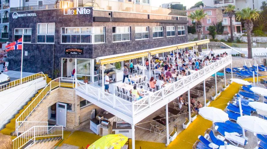Marti Beach Hotel расположен на западе Турции, на первой пляжной линии. В 2,5 км от отеля находится замок Кушадасы.