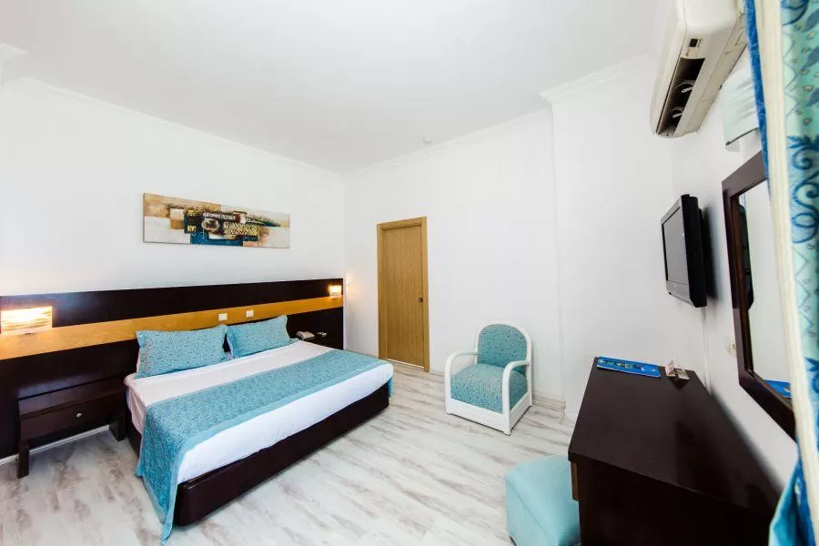 Во всех просторных и светлых номерах Marti Beach Hotel есть душ, фен, кондиционер, сейф, мини-бар, телевизор, телефон, Wi-Fi и балкон. В отеле обустроены семейные апартаменты.
