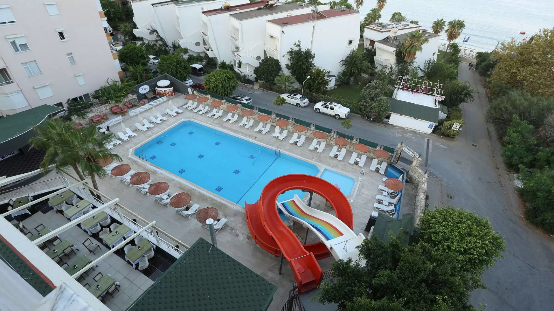 Отель был построен в 1999 году и последняя реновация проведена в 2017 году. Общая площадь отеля составляет 3800 м². Отель включает один корпус на 5 этажей с 130 номерами и 2 лифтами. В отеле имеются пляжные полотенца, шезлонги, матрасы, зонтики, детская кровать, хаммам, сауна, фитнес зал и настольный теннис.