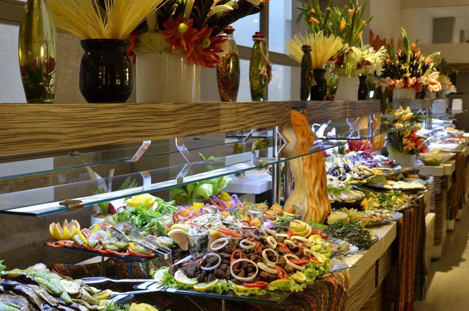 завтрак, поздний завтрак, обед, ужин, поздний ужин - шведский стол, горячие и холодные закуски в определенные часы в течение дня, чаепитие, кофе, выпечка, ночные закуски, услуги ресторанов A’la Carte по предварительной резервации – только одно посещение за период проживания, алкогольные и безалкогольные напитки местного производства на разлив до 24:00.