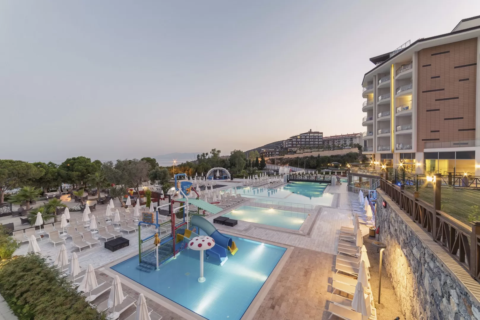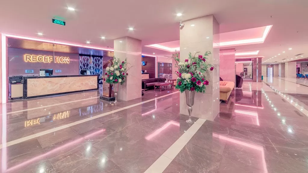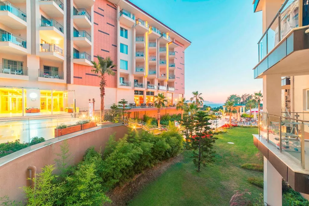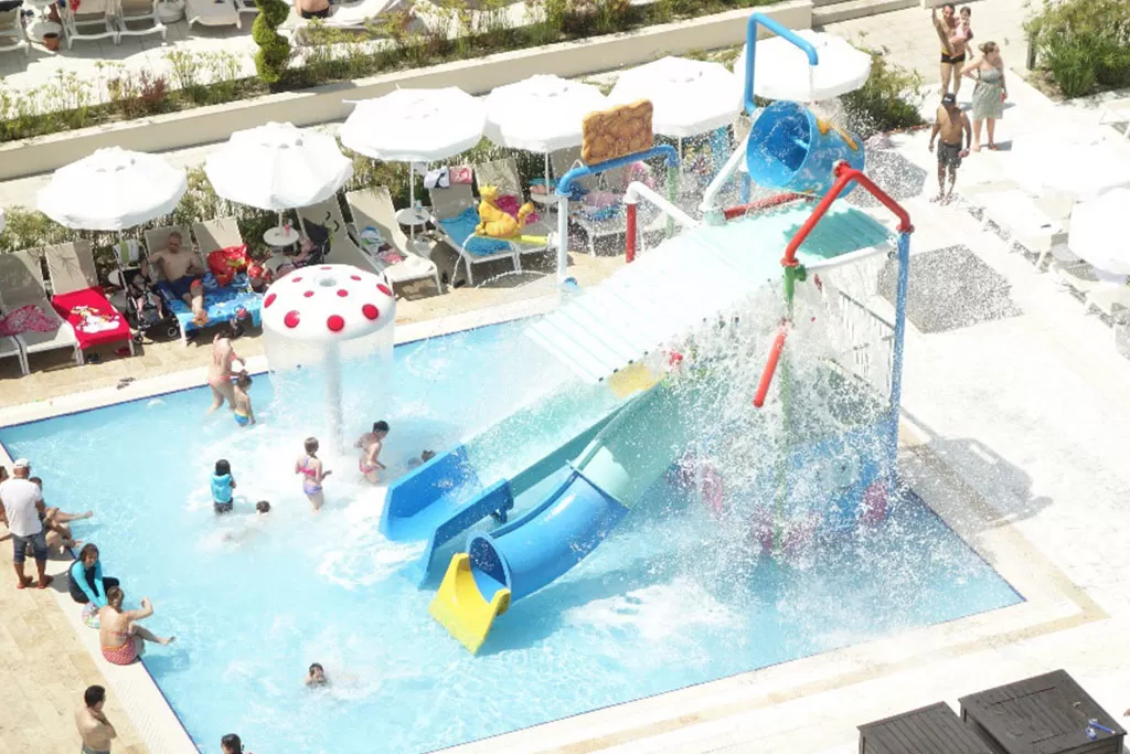 Построен в 2015 году, состоит из четырех корпусов (7 и 8 этажей) и общей площадью 30000 м². В отеле предоставляются услуги баскетбольной площадки, волейбольной площадки, настольного тенниса, пляжного волейбола, сауны, теннисного корта, фитнес зала, хаммама и Wi-Fi. Доступны бизнес-услуги, включая конференц-зал. На территории есть аренда автомобилей, услуги доктора, парикмахерская, прачечная и салон красоты. Отель принимает кредитные карты Master Card и Visa. В отеле также имеются 4 открытых бассейна (один из них с подогревом в холодное время года), 1 крытый бассейн (78 кв.м.) с подогревом в холодное время года и 5 водных горок.