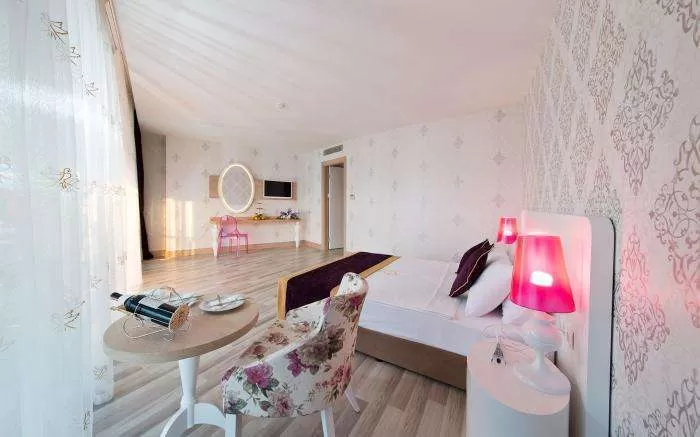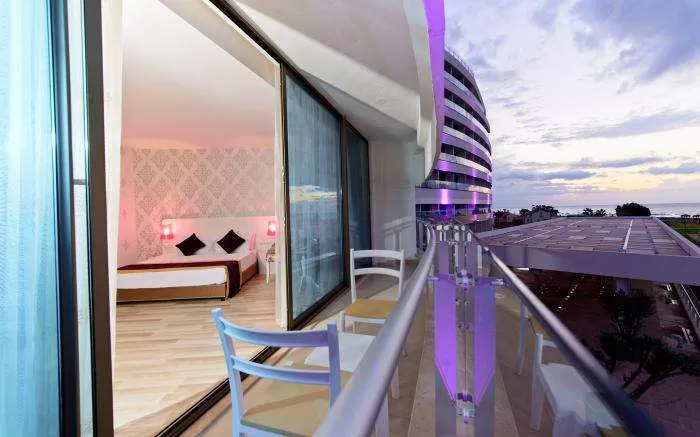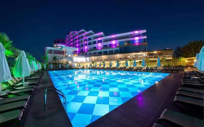 Отель площадью 42.000 м2, находится в 80 км от аэропорта г.Антальи, в 30 км от г.Сиде, в туристическом местечке Манавгат, в 200 м от берега моря. Год открытия: 2013.