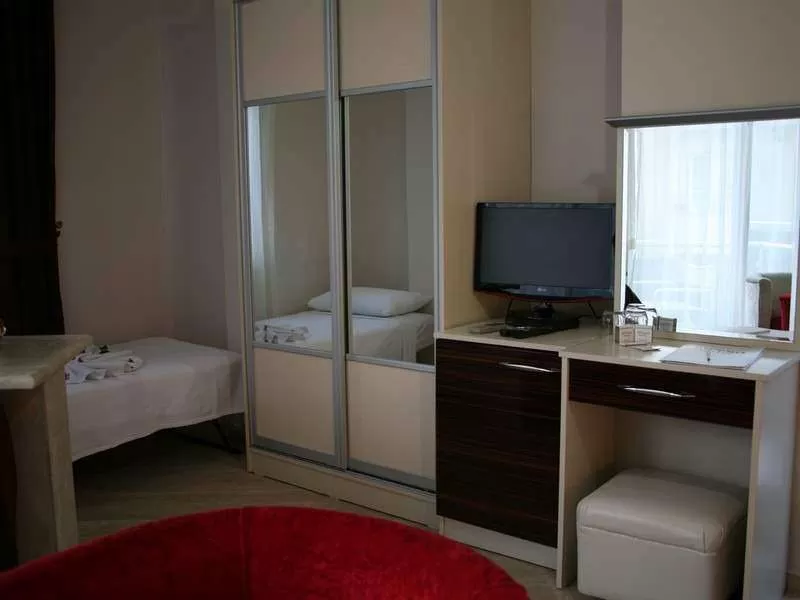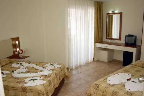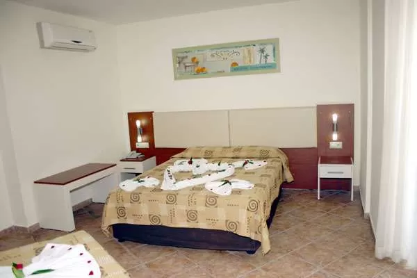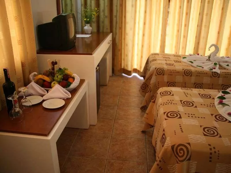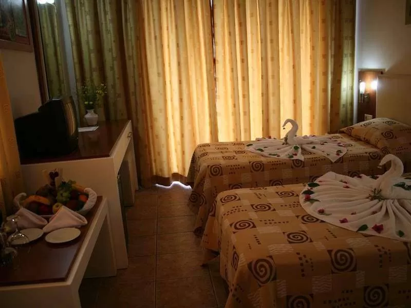 Standart room (18-22 м2): однокомнатный номер, 1 двуспальная или 2 односпальные кровати, или 1 двуспальная и 1 односпальная кровать, дополнительное спальное место - раскладная кровать. В номере: балкон, ванная комната (душ), мини-бар (платно), сейф (платно), сплит кондиционер, телефон (платно), фен, телевизор (есть русские каналы), wi-fi не предоставляется; уборка в номере - ежедневно, смена белья и полотенец - 3 раза в неделю, покрытие пола - плитка, вид из номера - на бассейн/сад/горы. Расположение номеров: Block (все этажи).