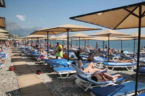 собственный песчано-галечный пляж в 750 м от отеля, протяженность пляжа – 150 м. Зонты, шезлонги, матрасы – бесплатно, полотенца - под депозит. Между отелем и пляжем проходит дорога и променад. Имеется шатл-сервис до пляжа.