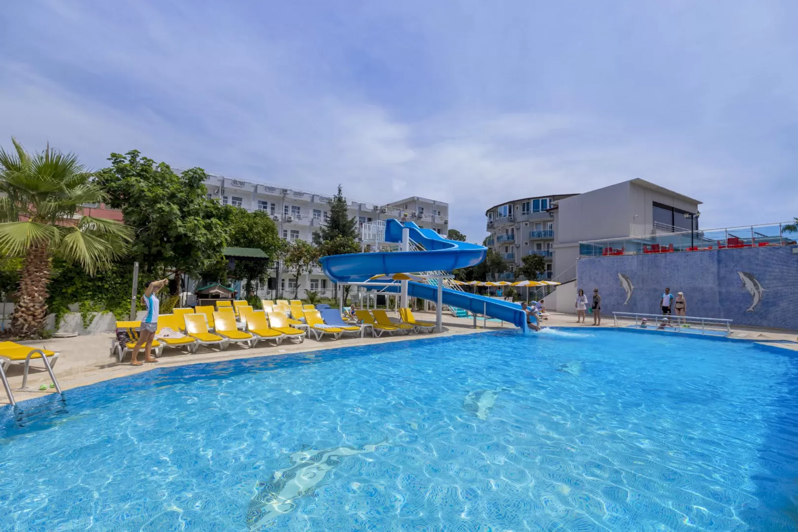 Гости могут наслаждаться вечерними и дневными развлекательными программами, сауной, хаммамом и водными горками. Для детей оборудованы детский бассейн и игровая площадка. На территории также есть открытый бассейн (250 кв.м.) и водная горка, работающая в определенные часы.