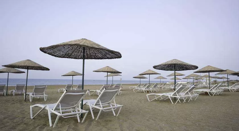 Собственный песчаный пляж в 150 м от отеля. На пляже бар - бесплатно. У бассейна и на пляже зонтики, шезлонги, матрасы, пляжные полотенца – бесплатно.