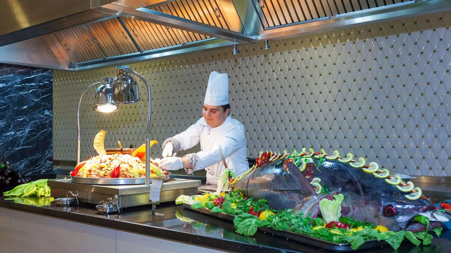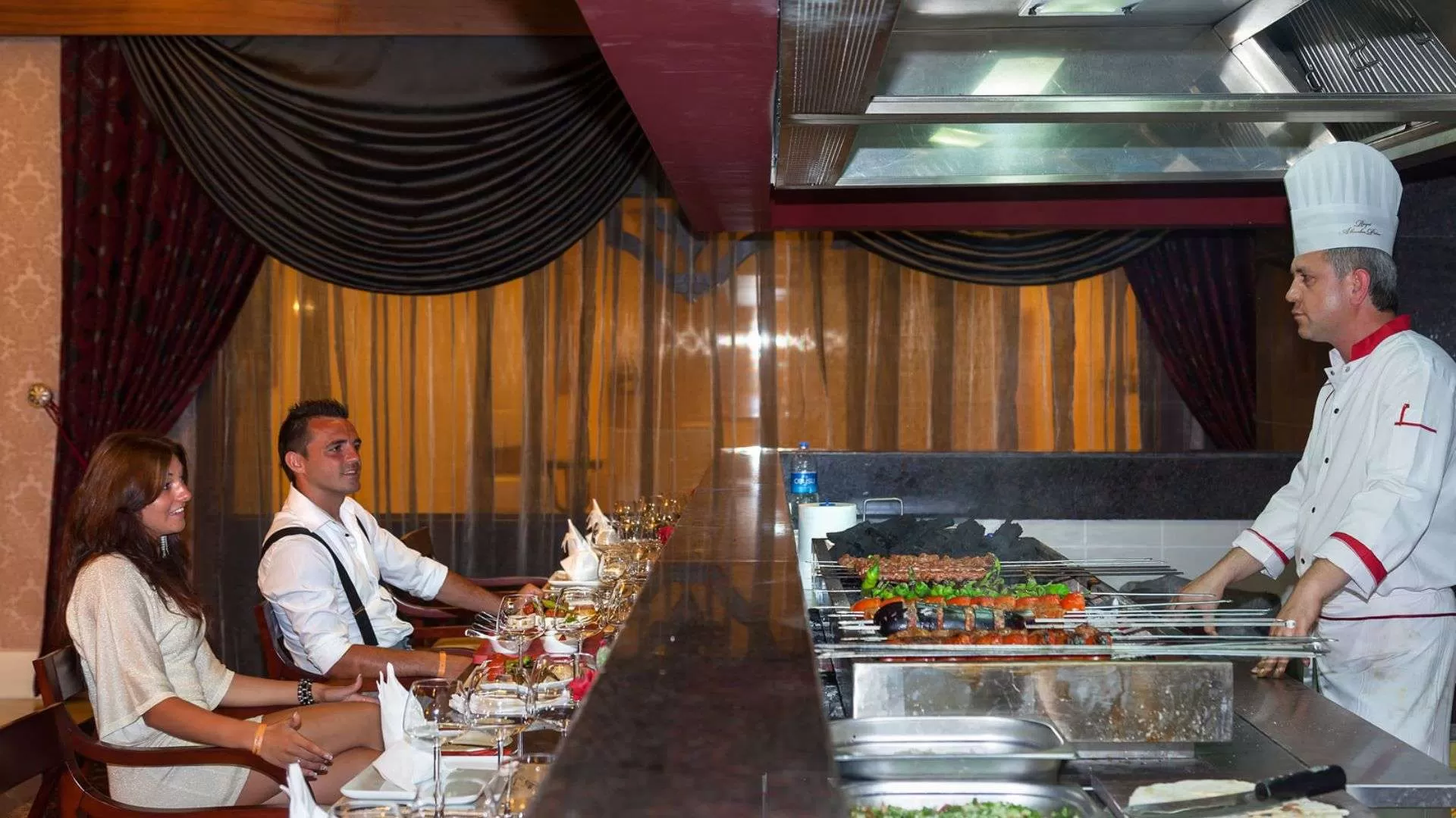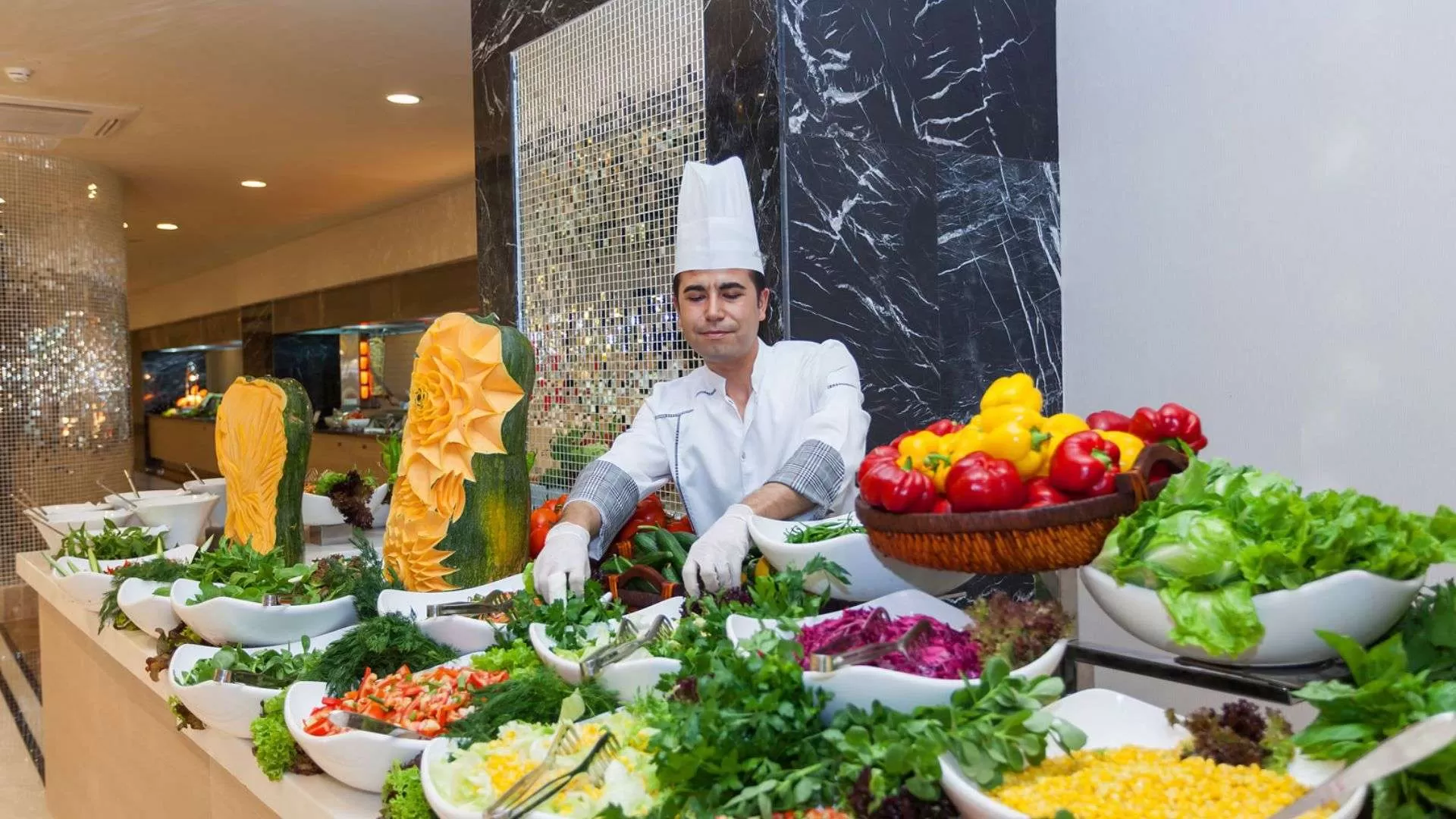 завтрак, поздний завтрак, обед и ужин - шведский стол, диетическое меню в осн.ресторане, горячие и холодные закуски в течение дня, сервис мороженого в определенное время, чаепитие, кофе и выпечка, ночной суп и закуски, ужин в ресторанах A’la Carte по предварительной резервации – 1 бесплатное посещение в неделю, следующее посещение – платно, алкогольные напитки местного и некоторые импортного производства на разлив в часы работы баров.