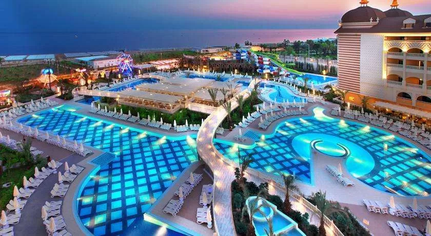1 основной ресторан (диетическое меню), 5 ресторанов a'la carte (турецкий, дальневосточный), итальянский, рыбный, мексиканский), 7 баров, 3 конференц-зала, бассейны (открытый и крытый), аквапарк 95 водных горок), спа-центр.