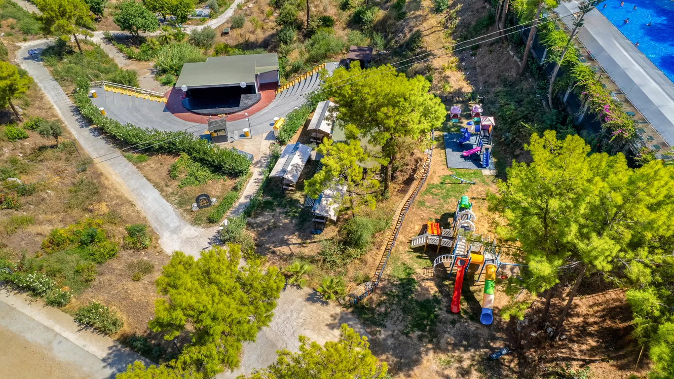 Гостям предлагаются сезонный открытый бассейн, сад, частный пляж и аквапарк. В отеле также есть детский клуб, ресторан, терраса и бар. Развлекательные мероприятия организует команда аниматоров, и круглосуточно работает стойка регистрации.