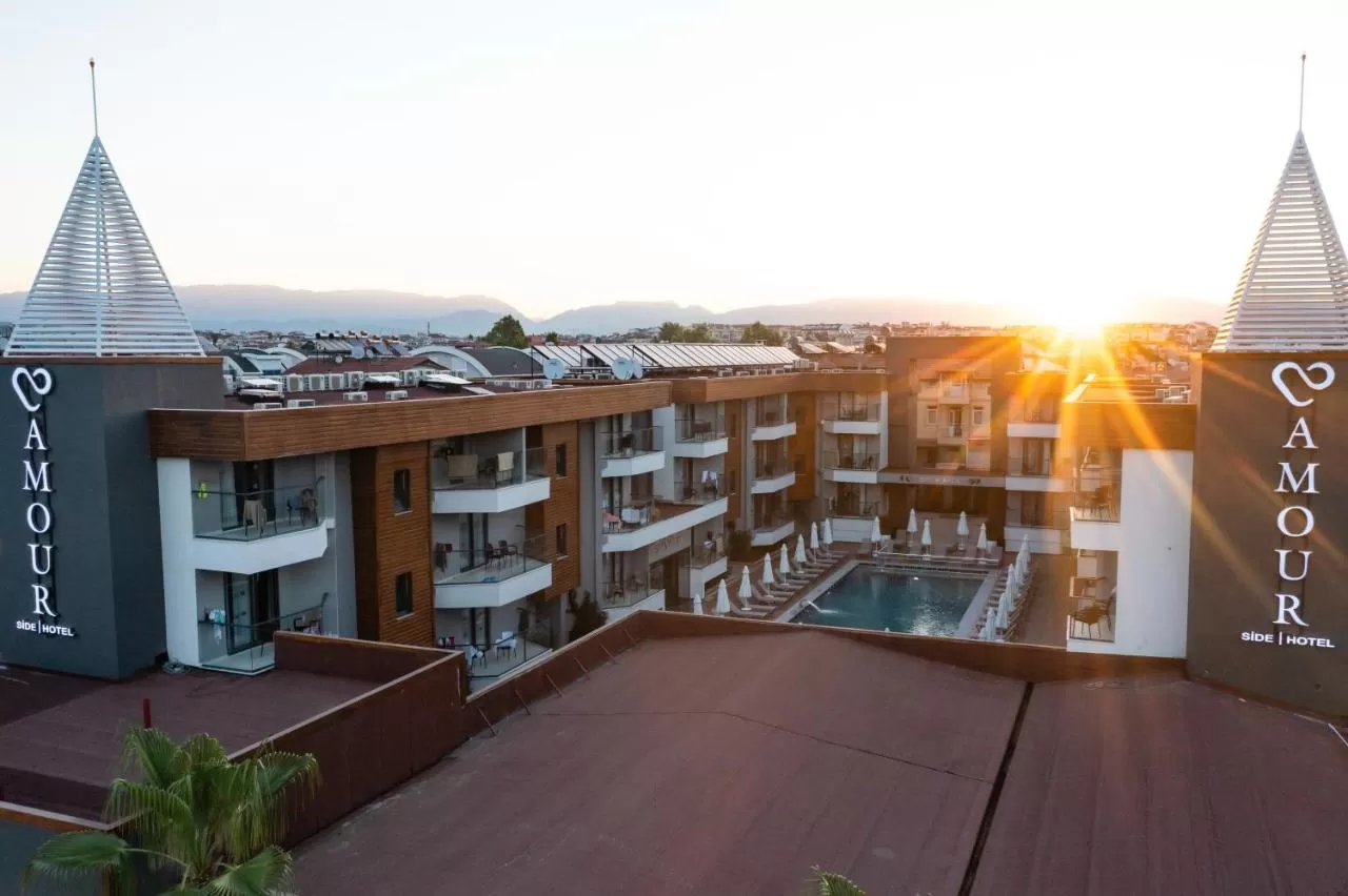Side Amour Hotel — четырёхзвёздочный отель, расположенный на первой линии в городе Сиде. Отель находится неподалёку от Пляжа Кумкёй (200 м) и в 2,7 км от Пляжа Соргун. До Рекреационного центра Green Canyon — 22 км. Расстояние до аэропорта Антальи составляет 71 км.