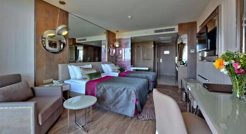 Аренда автомобиля, бар, бассейн, бассейн детский, бассейн крытый, вечерние развлекательные программы, детская площадка, джакузи, дискотека, конференц-зал, мед-кабинет, парикмахерская, ресторан, сауна ($), торговый центр.