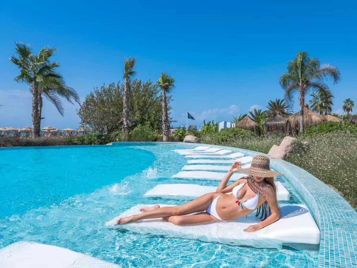 Отель располагает частным песчаным пляжем, большими открытыми бассейнами, водными горками, спа-салоном с сауной и турецкой баней.