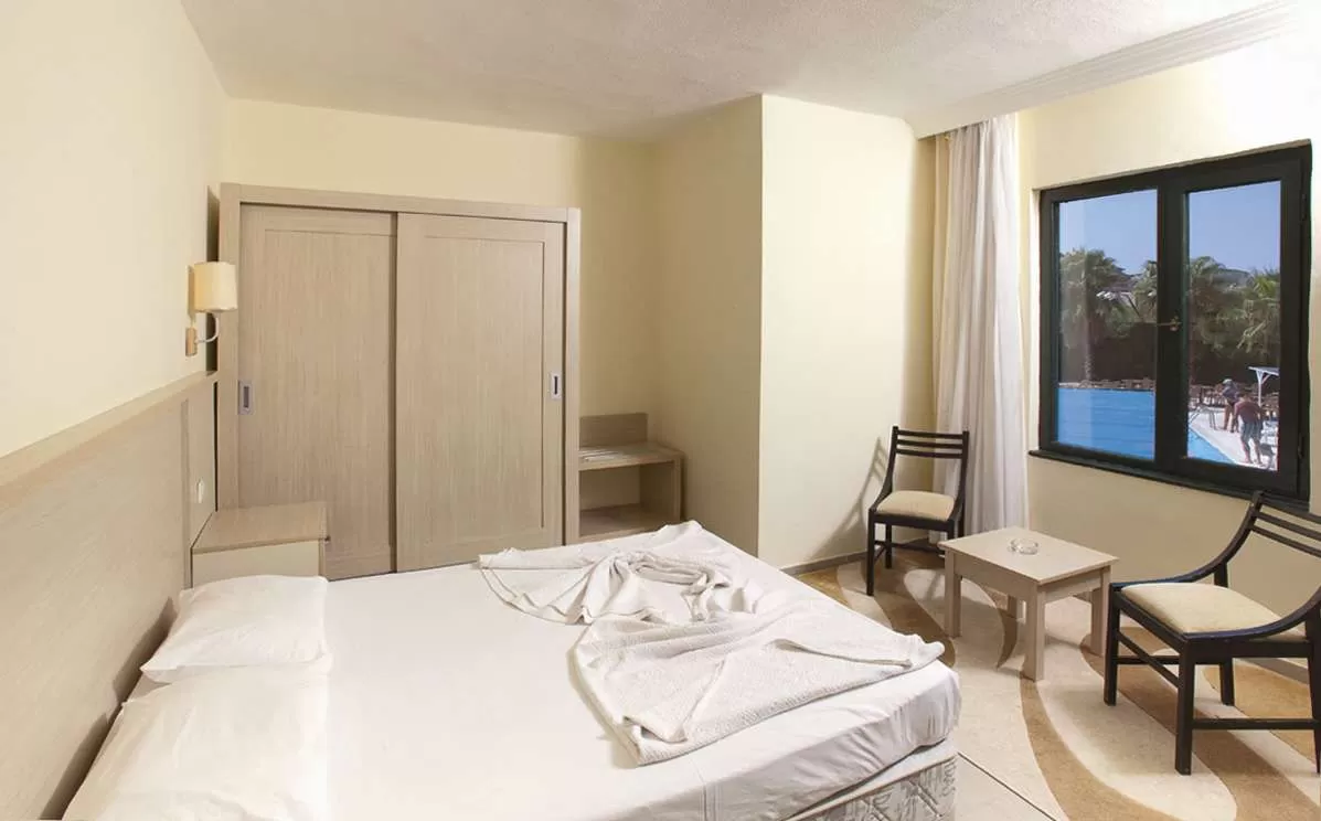 Standart Room (26-29 м2): однокомнатный номер, 1 двуспальная или 2 односпальные кровати. Дополнительное спальное место - софа/раскладная кровать. В номере: ванная комната (душ/ванная), балкон, мини-бар (пустой, бесплатно), сейф (платно), центральный кондиционер, фен, телевизор (есть русские каналы), телефон (платно), покрытие пола - плитка, смена белья: два раза в неделю, уборка в номере: ежедневно.