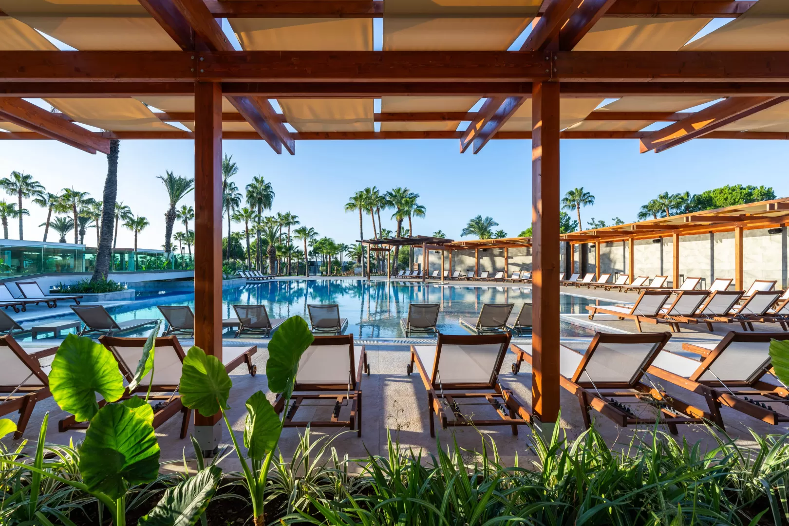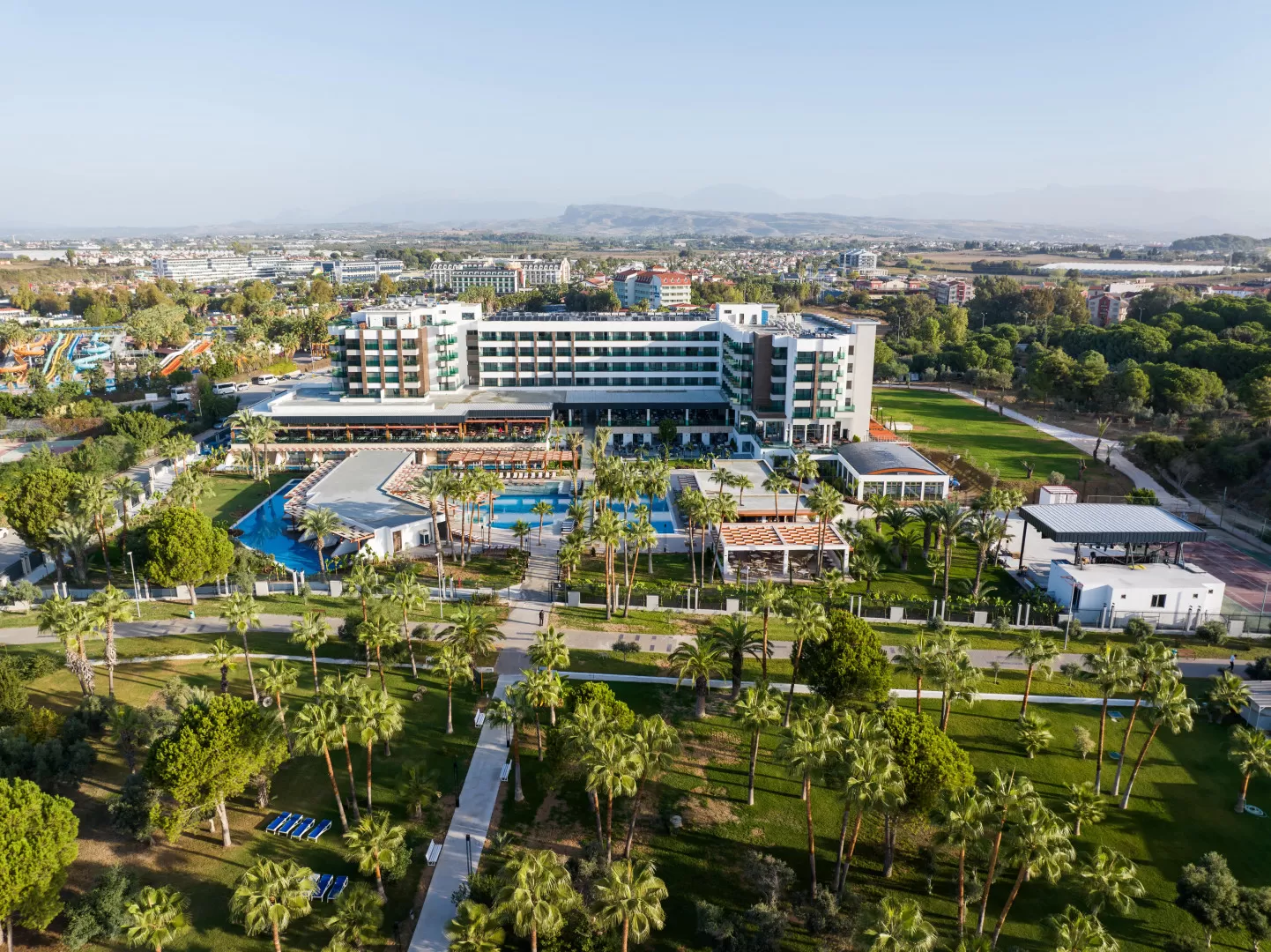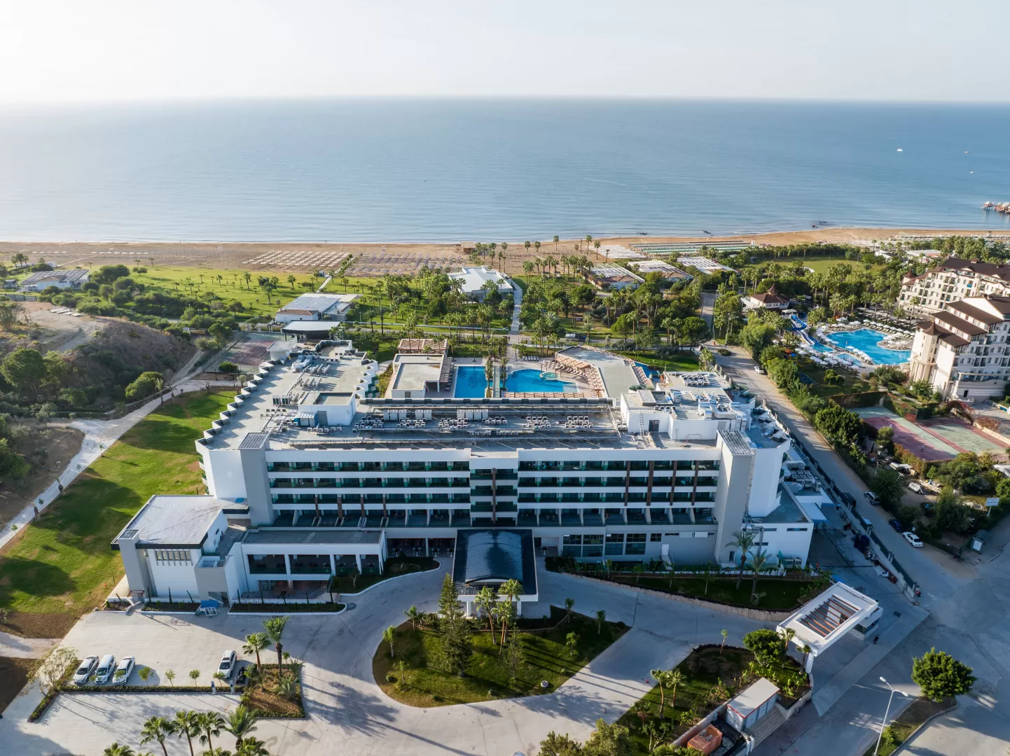 На территории есть один открытый бассейн с пресной водой (без подогрева) и крытый бассейн с подогревом в зимний период (60 м²), водные горки, спа-центр с сауной и хаммамом, а также фитнес-зал. Предусмотрены спортивные площадки для тенниса и пляжного волейбола.