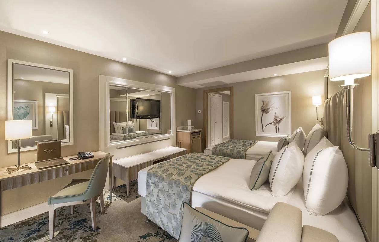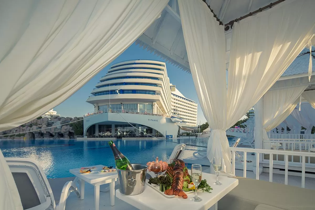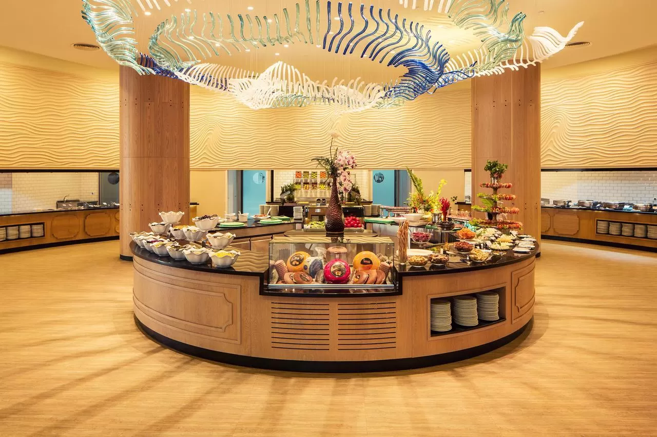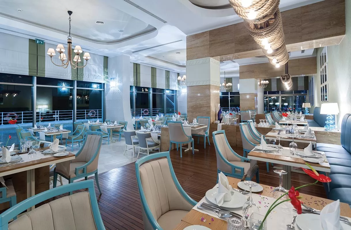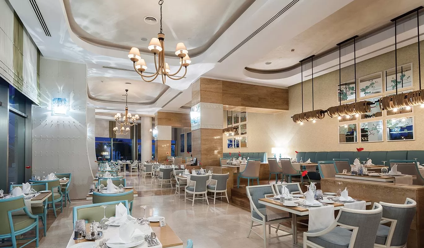Гостям предоставляются концепции питания "Ultra All Inclusive" (UAI), что включает трехразовое питание в формате "шведский стол" в главном ресторане, местные алкогольные и безалкогольные напитки, некоторые импортные напитки, мороженое и закуски в течение дня. В отеле работают главный ресторан, два снэк-ресторана, пять ресторанов a la carte с итальянской, азиатской, турецкой кухней, морепродуктами и мясными блюдами, кондитерская, кофейня и девять баров, включая лобби-бар, бары у бассейна и на пляже.