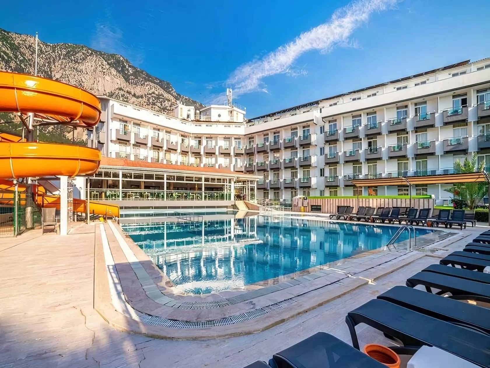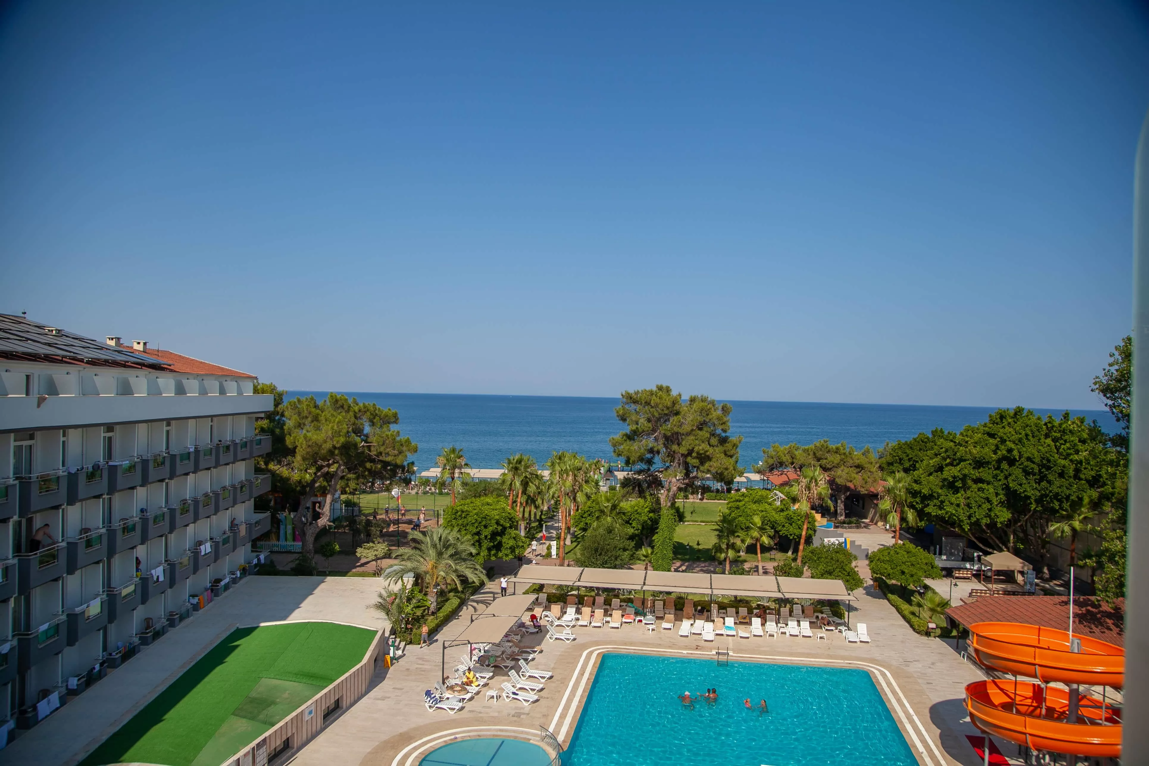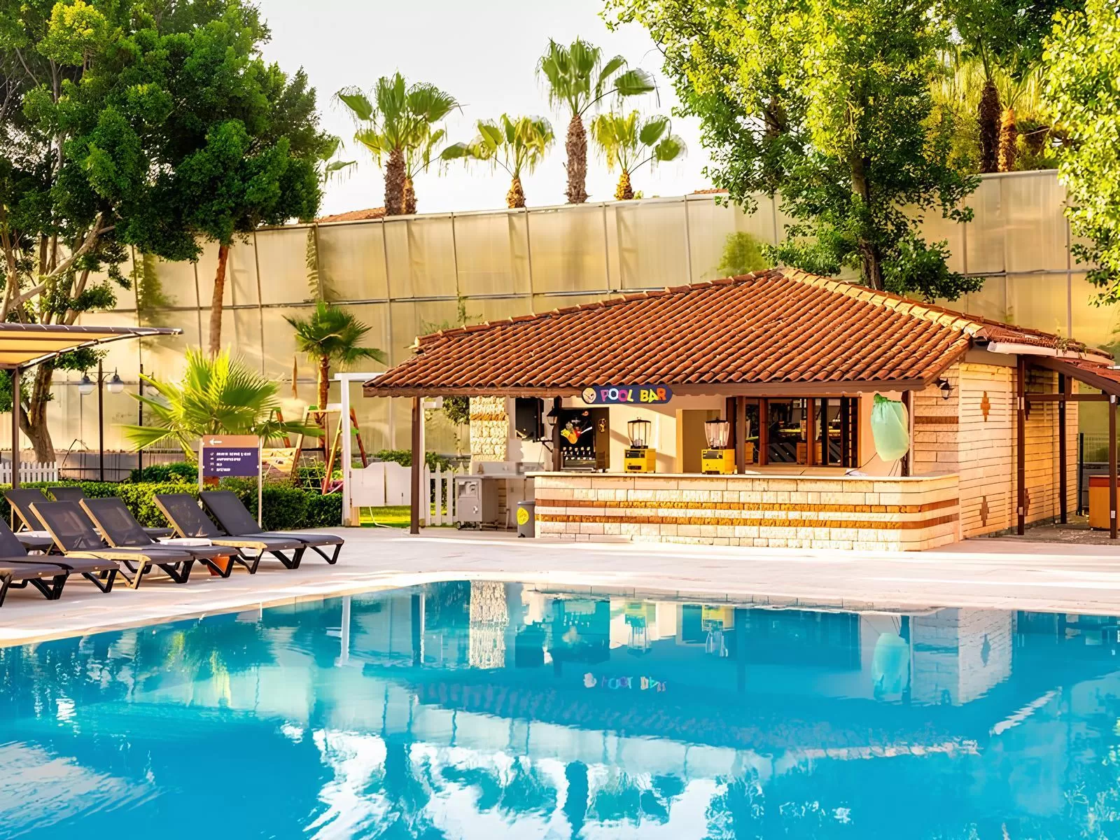 Отель предлагает множество удобств и развлечений для своих гостей: открытый бассейн, водную горку, спа-центр с сауной, хаммамом и массажными процедурами, фитнес-центр, теннисный корт, настольный теннис, бильярд и анимационные программы. Для детей предусмотрены детский бассейн, детская площадка, детская кроватка и стульчик для кормления по запросу.